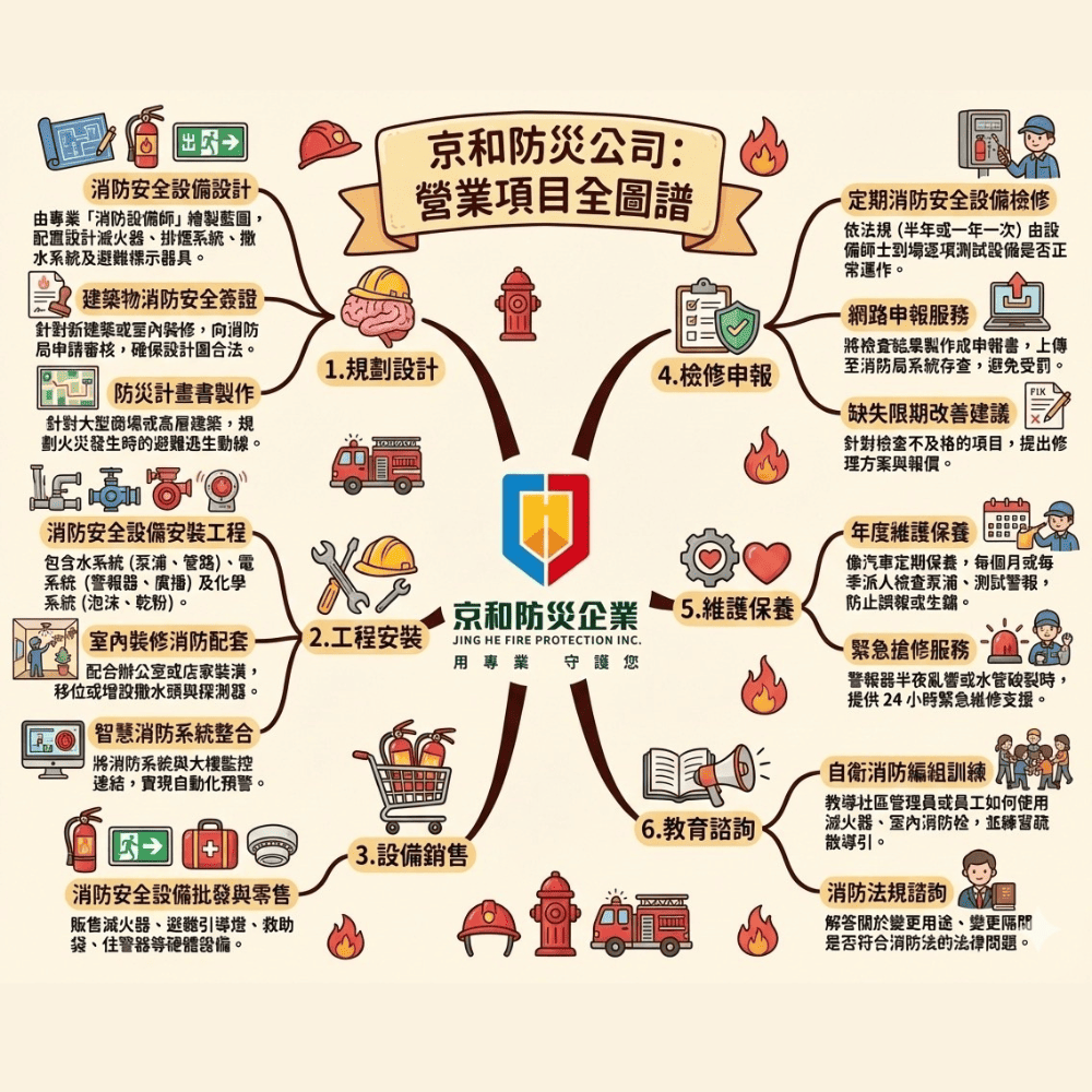 許多業主認為只要設備裝好就沒問題,但實際上,消防查驗會逐項確認設備是否符合設計與法規。若設計與現場不一致,就可能被要求改善。